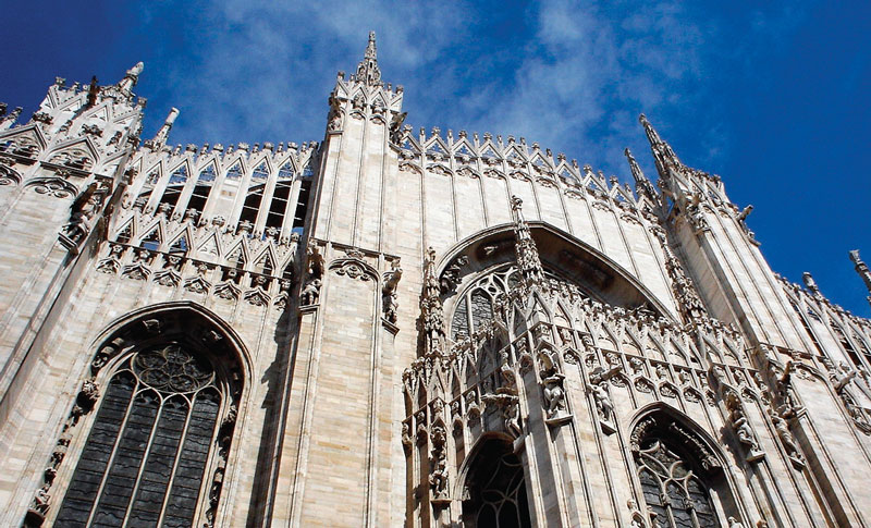 The Duomo di Milano,— or Milan Cathedral — took nearly six centuries to build. It is the largest church in Italy and the fifth largest in the world. The Duomo is dedicated to St. Mary of the Nativity and acts as the seat of the Archbishop of Milan.