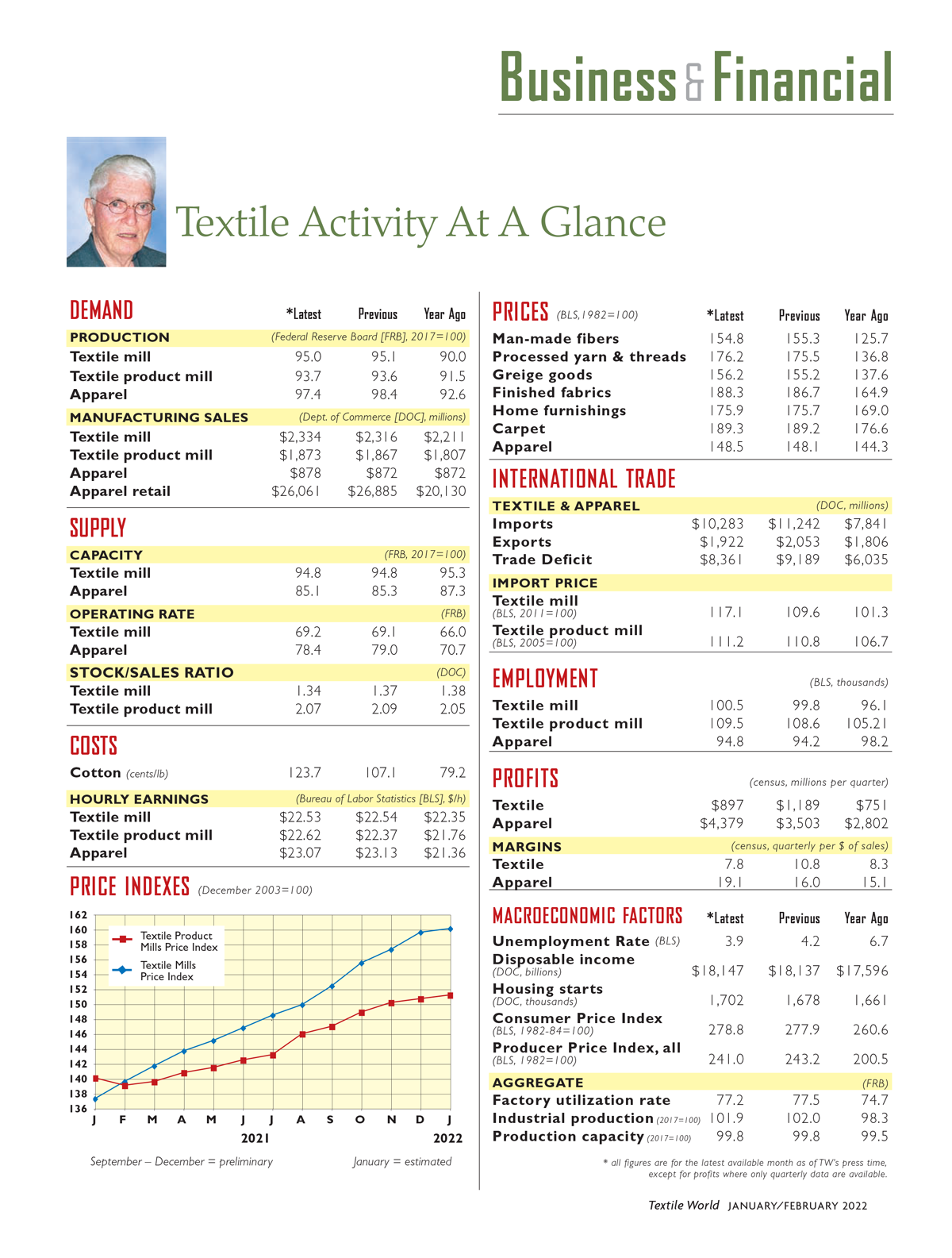 Textile WorldBusiness & Financial January/February 2022: Textile Activity At A Glance February 18, 2022 January/February 2022